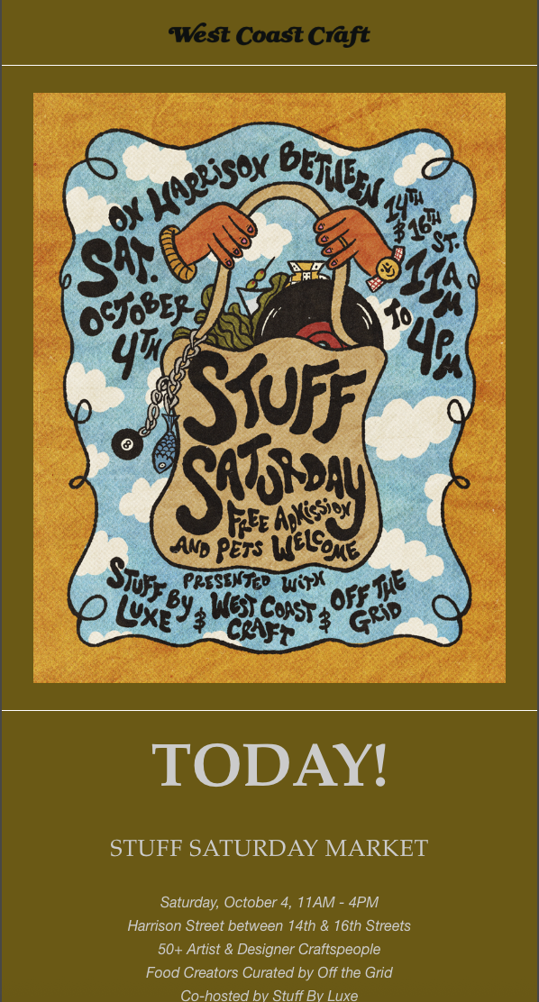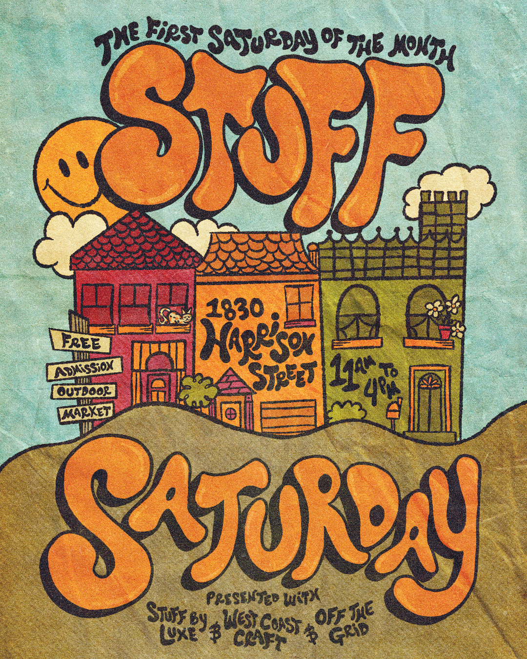 Stuff Saturday Design project included digital flyers to use for event promo materials. Event hosted by West Coast Craft & Off The Grid & Stuff.Software Used: Photoshop & Procreate
